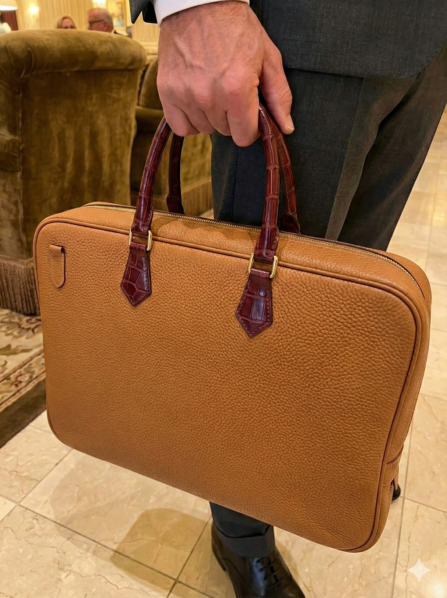 Authentic Materials & Traditional Construction Our briefcases are crafted using only high-quality, full-grain vegetable-tanned leathers and premium options like Horween Shell Cordovan or exotic skins (Alligator, Ostrich). Unlike mass-market bags, we use traditional saddle stitching—a hand-sewing technique that is significantly stronger and more durable than machine stitching. We finish every edge by hand and use stainless steel hardware to ensure your bag handles years of daily use.