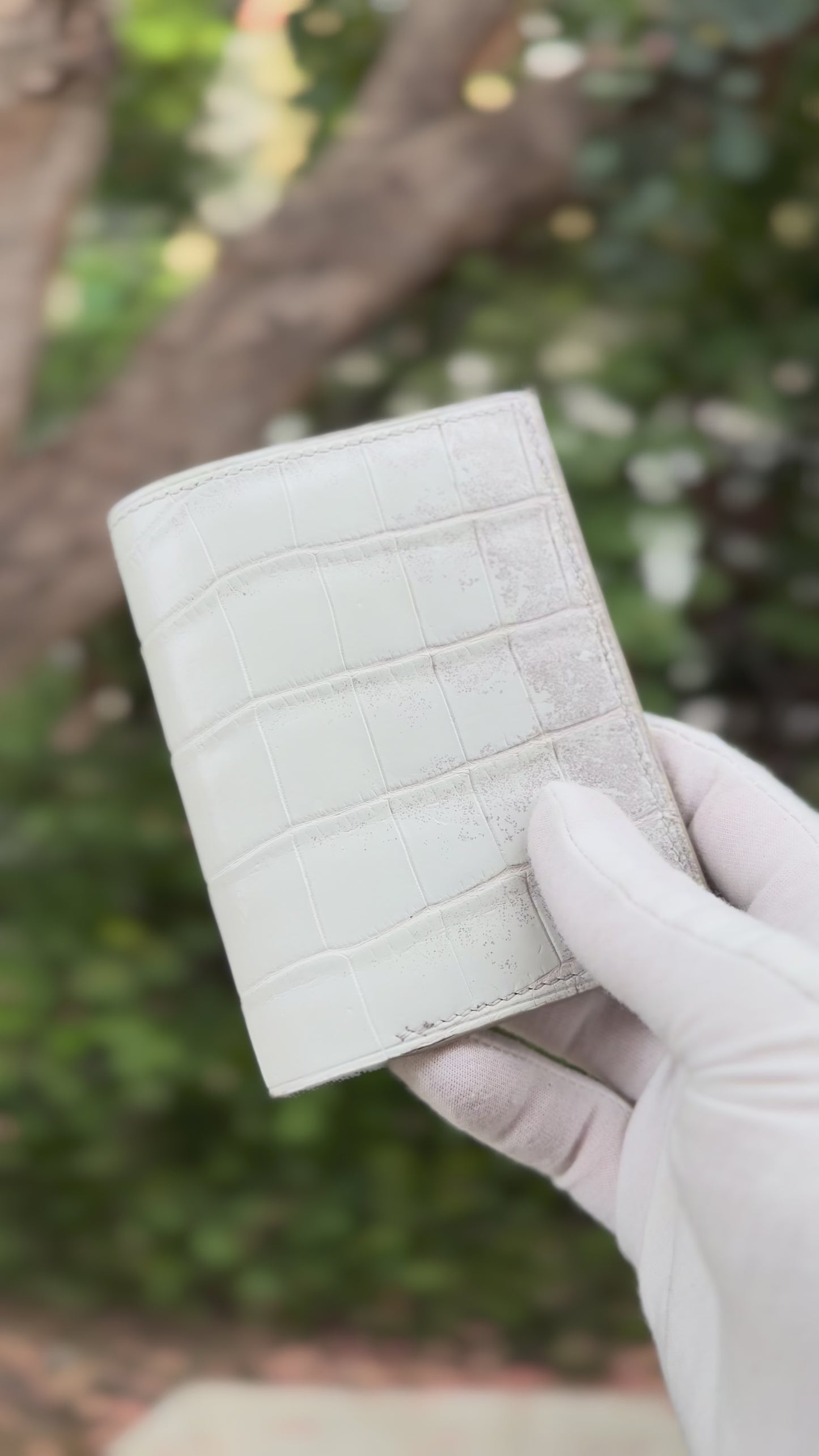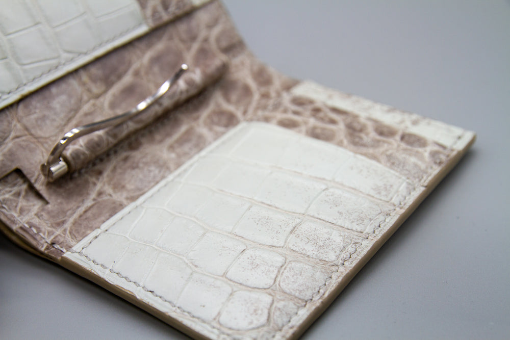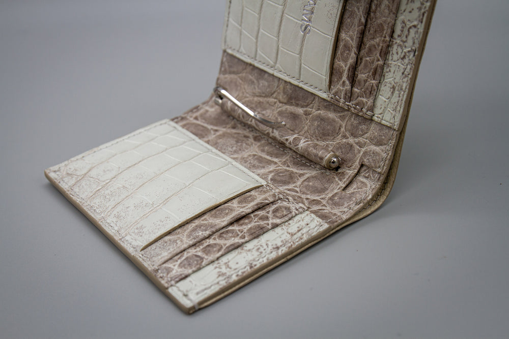 Looking for a luxury wallet? Check out this rare and exceptional himalayan crocodile money clip wallet for men. Crafted from premium, ethically sourced Himalayan crocodile leather, each wallet is a testament to unparalleled quality and distinctive style. This is more than just an accessory; it's a one-of-a-kind piece, meticulously hand-cut and hand-stitched by skilled artisans. The impeccably constructed design offers remarkable versatility, providing a generously sized yet practical solution for organizing your essentials with ease. Experience the unique texture and enduring elegance of genuine himalaya crocodile leather in a wallet that is as individual as you are.
